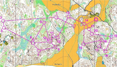 The first two days were spent running some model courses. I really enjoyed the orienteering and felt my navigating was going well, so I was really looking forward to the actual races. The first event for me was the middle distance. This was held in really nice Finnish terrain, with lots of contour and rock detail. Unfortunately, both my running and more importantly my navigation did not go so well, so I ended up finishing about 9min behind the leaders on a 30min course. I think I was rushing things too much, and although i didn't make too many big mistakes, I lost small amounts of time on almost every control.